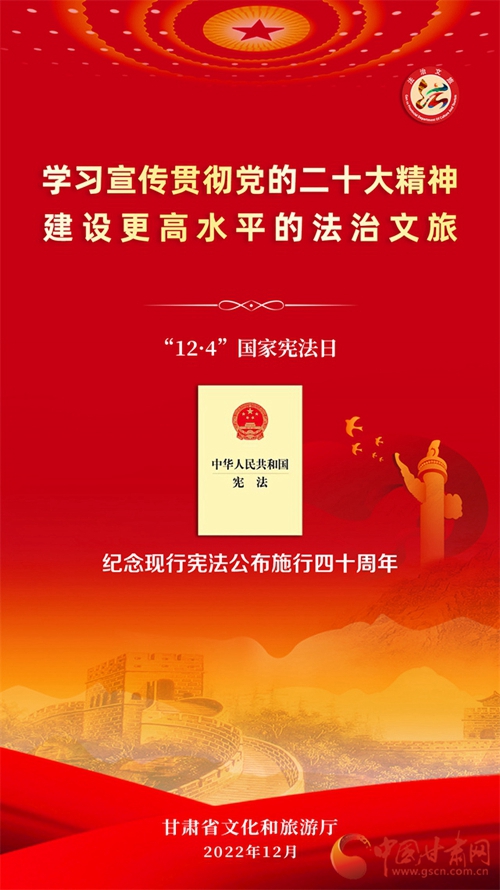 中國甘肅網(wǎng)12月7日訊 (本網(wǎng)記者 張?zhí)m琴)自12月4日國家憲法日暨憲法宣傳周啟動以來,我省各地開展了形式多樣的宣傳活動,為深入學習宣傳貫徹黨的二十大精神,不斷增強人民群眾法治意識,形成全民維護憲法的濃厚氛圍,同時加強文化和旅游的法治宣傳教育,省文旅廳近日開展了國家憲法日暨憲法宣傳周系列活動。