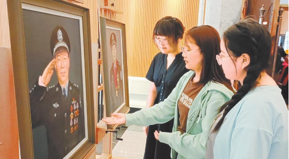 學生參觀英模畫像展覽