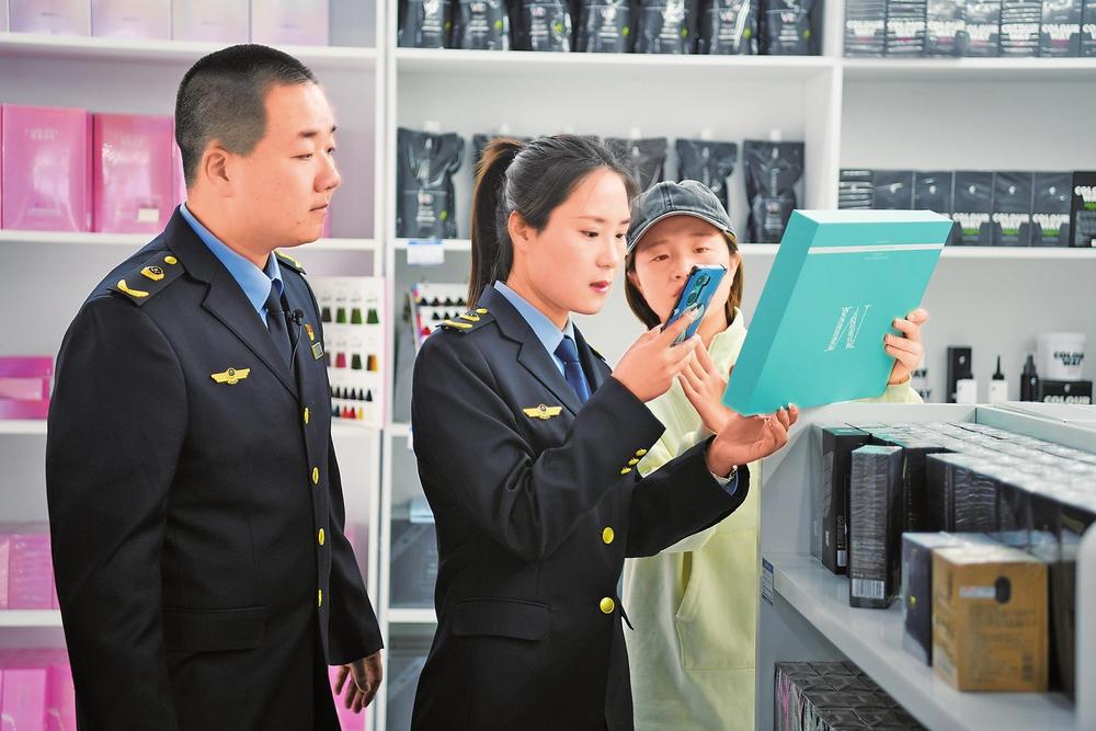 3月12日,在“3·15”國際消費者權益日來臨之際,蘭州市市場監(jiān)督管理局配合甘肅省藥品監(jiān)督管理局對化妝品批發(fā)市場進行檢查,指導企業(yè)規(guī)范經營,維護消費者權益。新甘肅·甘肅法治報記者王輝攝