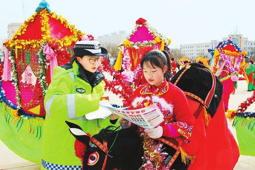 2月11日,合水縣公安民警巧借民俗活動群眾聚集的有利時機開展交通安全宣傳活動。新甘肅·甘肅法治報通訊員李曉攝