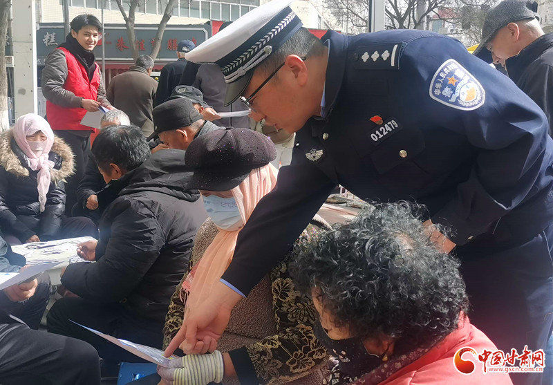 蘭州市公安局交警支隊(duì)龔家灣大隊(duì)民警走進(jìn)龔家灣街道龔西路社區(qū),通過“拉家常”與居民“零距離”交流,普及一盔一帶等交通安全常識(shí)。