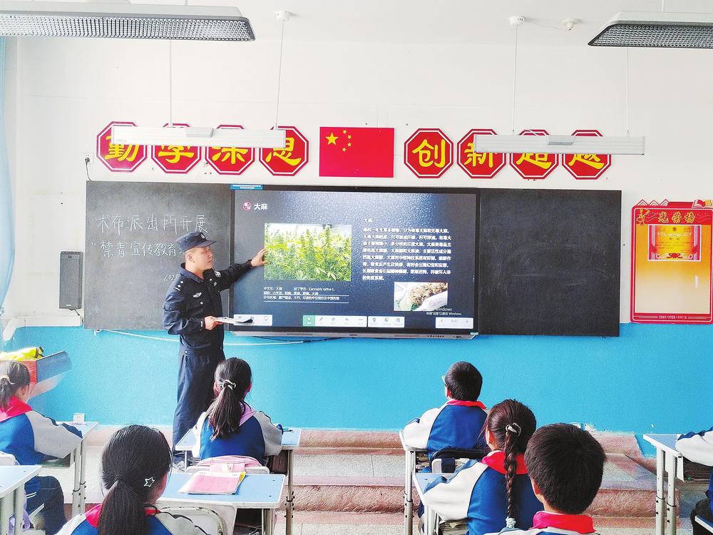 民警正給學(xué)生講解“防范青少年藥物濫用”等禁毒知識(shí)。近日,臨潭縣公安局術(shù)布派出所民輔警走進(jìn)轄區(qū)學(xué)校,開(kāi)展以“防范青少年藥物濫用”為主題的禁毒宣傳活動(dòng)。 新甘肅·甘肅法治報(bào)記者金凡裕攝
