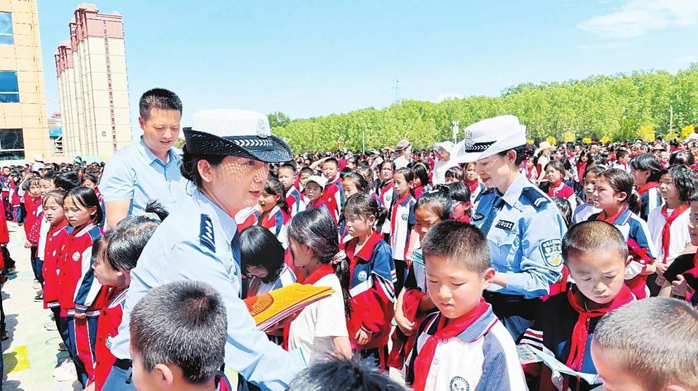 民警向?qū)W生發(fā)放宣傳資料。6月26日,積石山縣公安局交警大隊(duì)民警走進(jìn)城西小學(xué),開展“知危險會避險”交通安全宣傳教育活動,給學(xué)生們上了一堂暑期交通安全課。 新甘肅·甘肅法治報(bào)通訊員趙小紅攝
