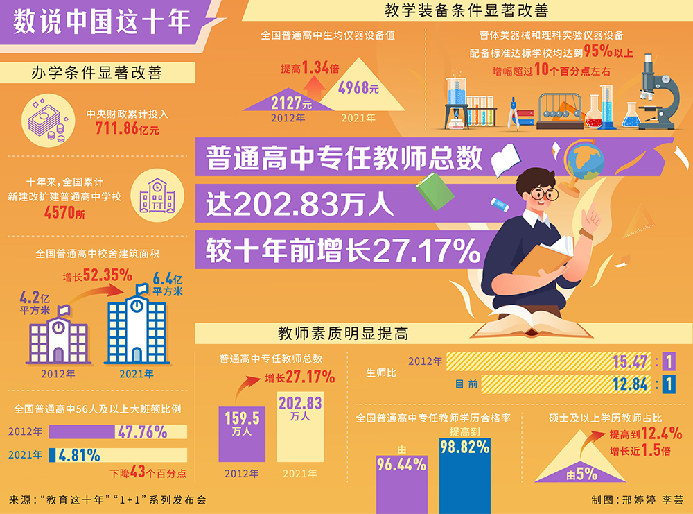 數(shù)說中國這十年丨普通高中專任教師總數(shù)達202.83萬人