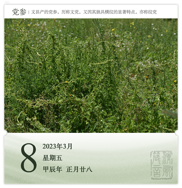簡介:黨參,多年生纏繞藤本,我國有名的藥食兩用植物,具有健脾益肺、養(yǎng)血生津之功效。現(xiàn)代藥理研究表明,黨參還具有增強(qiáng)機(jī)體免疫力、保護(hù)胃腸道黏膜及抗?jié)儭⒋龠M(jìn)造血機(jī)能、延緩衰老等多種藥理作用。黨參也是保健品,可入膳食,可做茶也可泡酒?;ü?-10月。文縣產(chǎn)的黨參,歷稱“文黨”,又因其獨具橫紋的顯著特點,亦稱“紋黨”,質(zhì)地優(yōu)良,歷史悠久,生長特殊,加工考究,入藥精道。其藥用價值與人參并列,為質(zhì)高的滋補(bǔ)佳品。