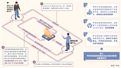 違法發(fā)放貸款罪。2013年10月至2016年1月,甲利用其擔(dān)任A市B區(qū)支行黨委委員、副行長(zhǎng)的職務(wù)便利,接受多家公司和個(gè)人請(qǐng)托,在明知其借款用途不真實(shí)、貸款資料虛假或冒名貸款等情形下,要求下屬不嚴(yán)格調(diào)查、形成不實(shí)的調(diào)查報(bào)告,并作為分管副行長(zhǎng)對(duì)相關(guān)公司和個(gè)人申請(qǐng)的貸款審核通過(guò),違法發(fā)放貸款3670萬(wàn)元,造成本金456.25萬(wàn)余元未收回。