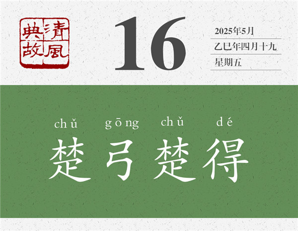 一般情況下,人們只拿楚恭王的話說事,并以“楚弓楚得”為典,比喻利益沒有外流,所以不必糾結(jié),類于俗話所說的“肉爛了都在鍋里”。凡事想開些,固然沒錯;但想得太開了,就有些“啥都無所謂了”的感覺。到了這個地步,也就值得警惕了。