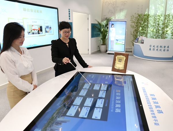 深圳市前海深港現(xiàn)代服務(wù)業(yè)合作區(qū)紀檢監(jiān)察工委強化大數(shù)據(jù)信息化賦能,搭建監(jiān)督服務(wù)平臺,暢通問題反映渠道。圖為該紀檢監(jiān)察工委工作人員介紹“前海清風碼”使用方法。趙師鈔 攝