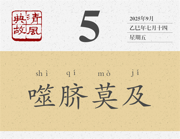 楊伯峻認為,“噬齊”是當時的俗語。齊,通“臍”,即肚臍。“噬齊”即用嘴去咬自己的肚臍,意謂夠不著,咬不到。后世則以“噬臍”或“噬臍莫及”為典,比喻再后悔也來不及了。葉夢得詩《懷西山》:“平生幾濡首,末路多噬臍。”