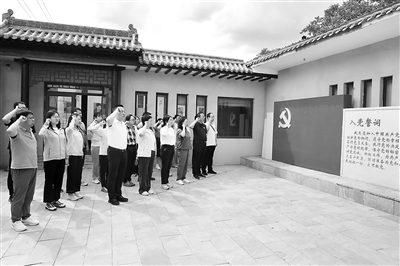 近日,山西省紀委監(jiān)委機關部分黨員在晉綏八分區(qū)(專署)舊址開展“傳承紅色基因,砥礪初心使命”主題黨日活動。圖為黨員重溫入黨誓詞。王鵬波 攝