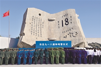 9月18日,沈陽“九•一八”歷史博物館殘歷碑前,警世鐘聲再次回蕩。