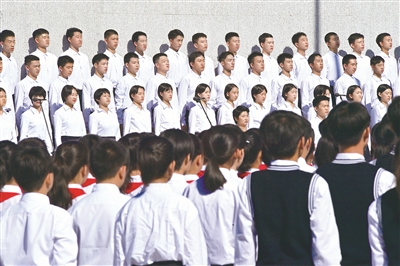 “白山黑水齊出動(dòng),復(fù)興我中華……”殘歷碑廣場(chǎng)上,80名青年學(xué)生鏗鏘有力的朗誦聲,讓《送戰(zhàn)友編歌壯行保國(guó)家》《黑水白山•調(diào)寄滿江紅》《濱江抒懷》三首分別由東北抗聯(lián)英雄楊靖宇、趙尚志、趙一曼當(dāng)年寫下的詩(shī)詞響徹在沈陽“九•一八”歷史博物館上空。