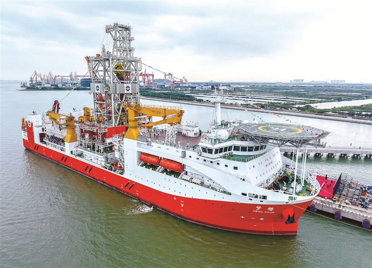 “十四五”時(shí)期,我國(guó)持續(xù)加強(qiáng)關(guān)鍵核心技術(shù)攻關(guān)和成果應(yīng)用,加快高端裝備、先進(jìn)制造等領(lǐng)域關(guān)鍵技術(shù)攻關(guān),推動(dòng)傳統(tǒng)產(chǎn)業(yè)向高端化、智能化、綠色化轉(zhuǎn)型。圖為擁有最大11000米的鉆深能力、我國(guó)自主設(shè)計(jì)建造的首艘大洋鉆探船“夢(mèng)想”號(hào),該船于“十四五”時(shí)期正式入列(資料圖片)。新華社記者 劉大偉 攝