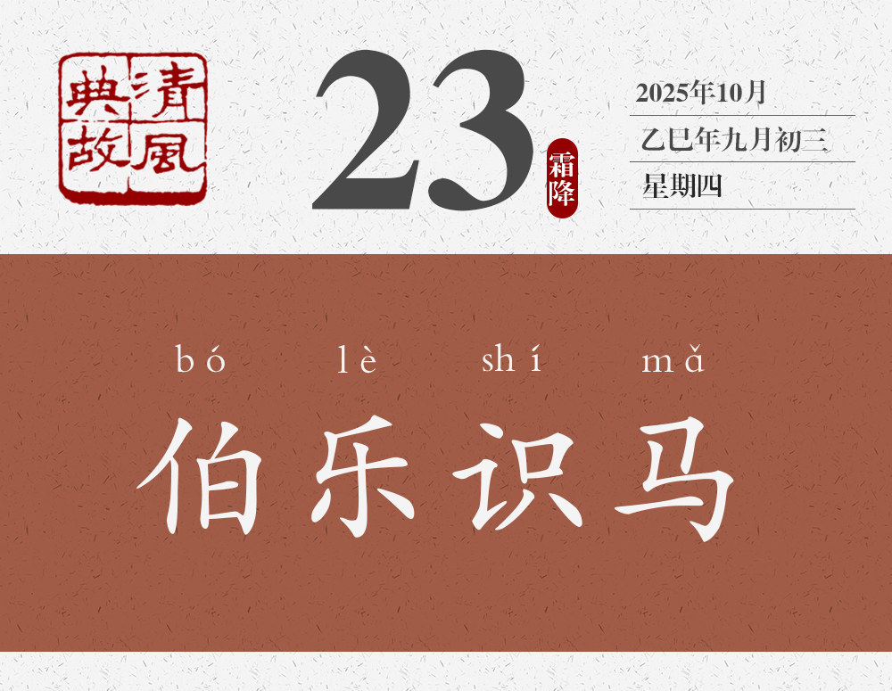 春秋秦穆公時(shí),有一個(gè)著名的相馬師叫孫陽。因?yàn)樯裨拏髡f中,掌管天馬的神仙叫伯樂,人們?yōu)榱吮硎緦?duì)孫陽的敬佩,就稱他為伯樂。屈原《九章•懷沙》以及《莊子•馬蹄》《列子•說符》都曾經(jīng)提到過伯樂?!稇?zhàn)國策•楚策四》里,春申君的舍人汗明,向春申君講了一個(gè)關(guān)于千里馬的故事:“夫驥之齒至矣,服鹽車而上太行。蹄申膝折,尾湛胕潰,漉汁灑地,白汗交流,中阪遷延,負(fù)轅不能上。伯樂遭之。下車攀而哭之,解纻衣以冪之。驥于是俛而噴,仰而鳴,聲達(dá)于天,若出金石聲者,何也?彼見伯樂之知己也。”