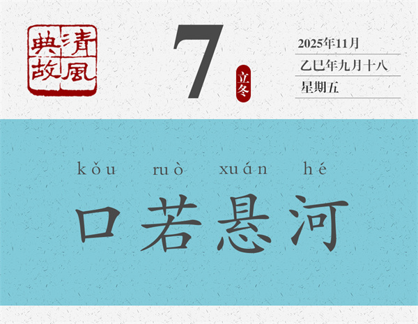 《世說(shuō)新語(yǔ)》將王衍此語(yǔ)收入“賞譽(yù)”類(lèi),文字幾乎原文照抄了《晉書(shū)·郭象傳》里的話:“王太尉云:‘郭子玄語(yǔ)議如懸河寫(xiě)(同“瀉”)水,注而不絕。”王太尉即王衍,郭子玄即郭象。“如懸河瀉水”是什么意思?一,有話可說(shuō),而且有說(shuō)不完的話;二,口才非常好,凡是心里能想到的,嘴里都能說(shuō)出來(lái)。三,說(shuō)話很有氣勢(shì),不哼哼哈哈,不磨磨嘰嘰,也不“這個(gè)這個(gè)”“那個(gè)那個(gè)”地沒(méi)完沒(méi)了。后世即以“口若懸河”為典,形容一個(gè)人表達(dá)能力超群,說(shuō)起話來(lái)滔滔不絕。