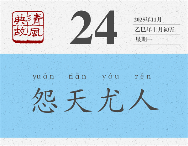 朱熹《論語集注》對“不怨天,不尤人”的理解要簡潔得多,也深刻得多:“不得于天而不怨天,不合于人而不尤人。”《荀子·榮辱》則更進(jìn)一層:“自知者不怨人,知命者不怨天。”能夠看清自己的人就不會去埋怨別人,那么埋怨誰呢,當(dāng)然是埋怨自己了;能夠知道自己命運(yùn)的人就不會怪罪于天,那么怪罪誰呢,當(dāng)然是怪罪自己了。后世則反“不怨天,不尤人”之意,而以“怨天尤人”為典,形容遇到不稱心的事情,或者事情不順利的時候,一味埋怨天,一味責(zé)怪別人。言外之意,就是不從主觀上找原因,不在自己身上找問題。宋人李昌齡《太上感應(yīng)篇》:“苛虐其下,恐嚇于他。怨天尤人,呵風(fēng)罵雨。”