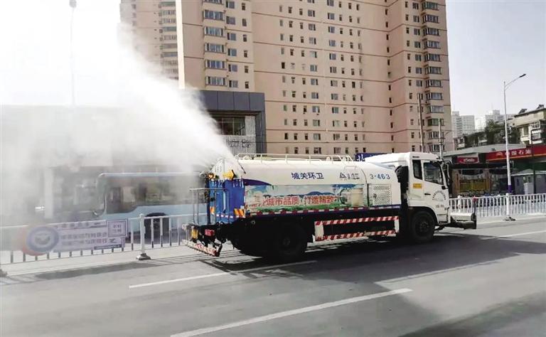 原標題:加派作業(yè)車輛 增加保潔頻次 保持路面濕潤