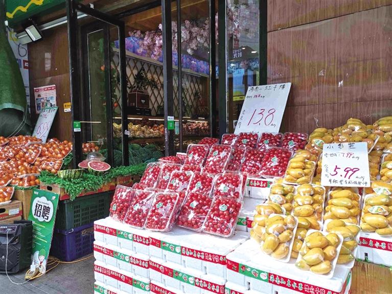 商鋪門(mén)前擺放的水果 陳 瑋 攝