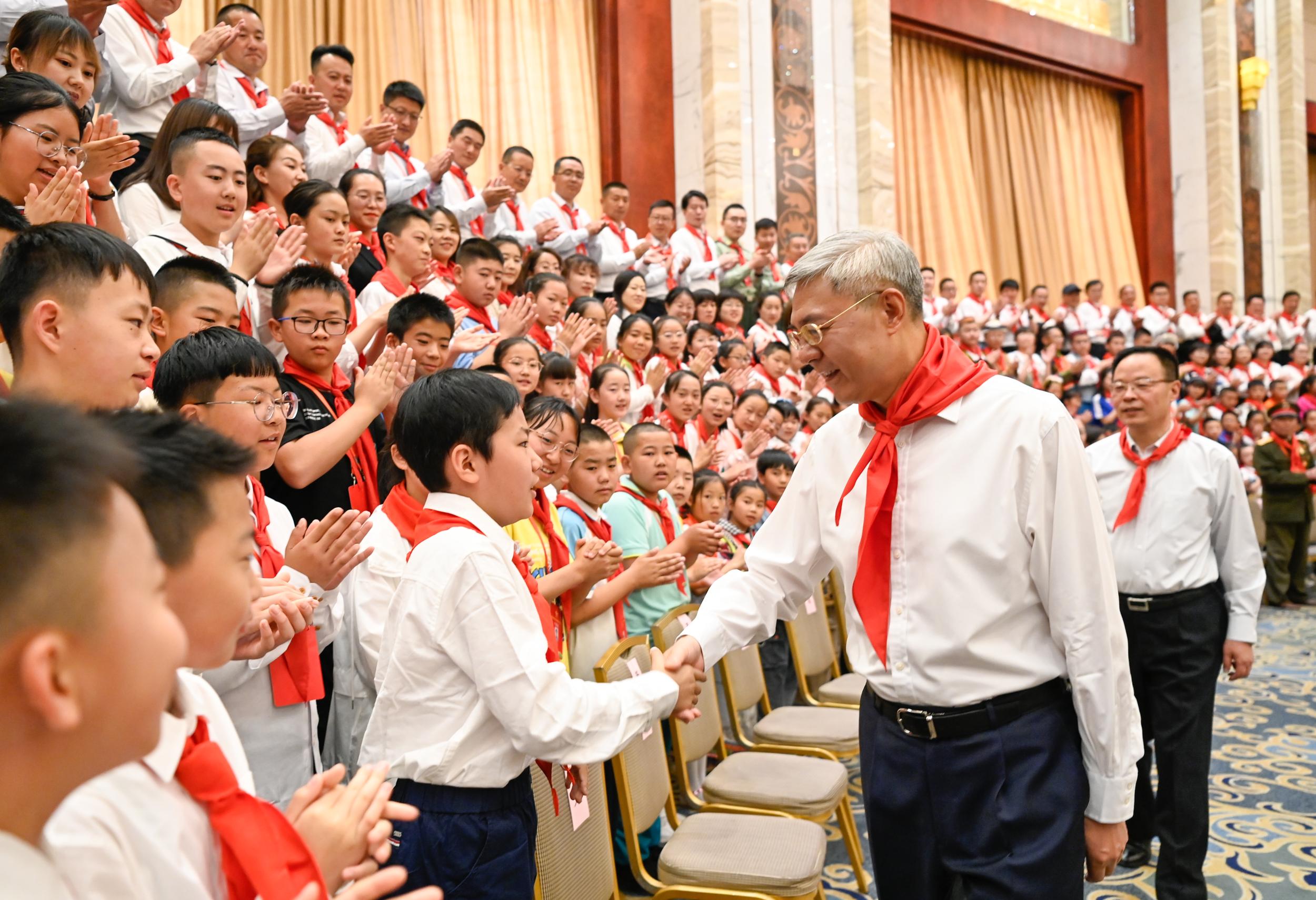 尹弘在會見甘肅省第八次少代會代表時寄語少年兒童