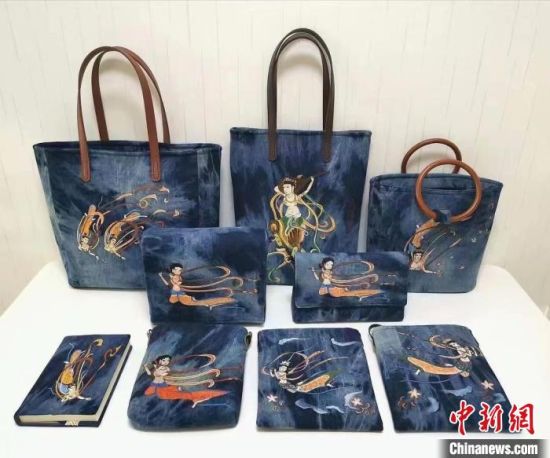 “我創(chuàng)作了《壁畫》系列作品,包含9幅飛天,結(jié)合扎染、手繪、刺繡工藝,大家反饋很好。”許靜說,該作品中采用牛仔布料,體現(xiàn)飛天的厚重感和年代感。