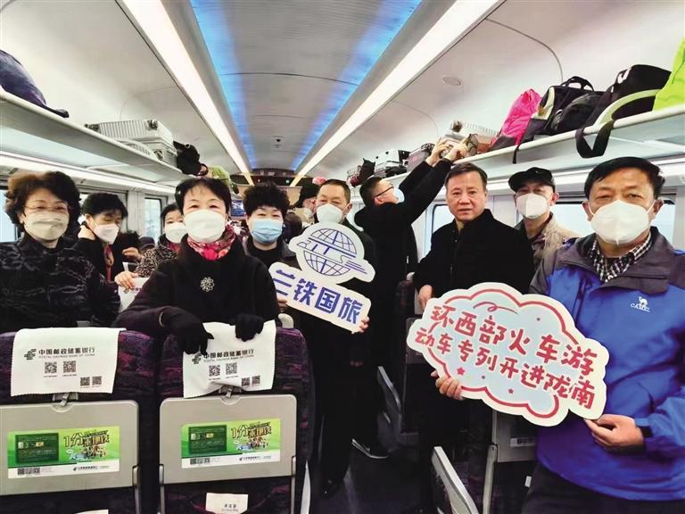 旅客乘坐“環(huán)西部火車(chē)游”列車(chē)開(kāi)啟踏春之旅