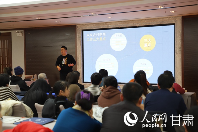 榆中縣農(nóng)產(chǎn)品質(zhì)量安全高素質(zhì)農(nóng)民培訓(xùn)班開班授課。人民網(wǎng)記者 黃帆攝