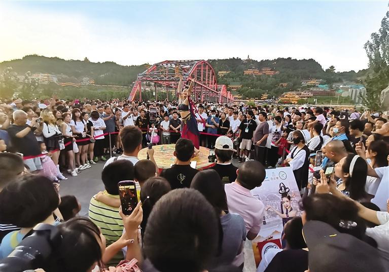 中國(guó)甘肅網(wǎng)7月24日訊 據(jù)蘭州日?qǐng)?bào)報(bào)道(記者 李超 攝)黃河之濱也很美,金城盛夏最誘人。隨著暑期開(kāi)啟,蘭州旅游市場(chǎng)開(kāi)啟火爆模式,機(jī)場(chǎng)和火車(chē)站人流井噴,熱門(mén)景區(qū)、博物館游客爆滿(mǎn),黃河風(fēng)情線(xiàn)人流如織,特色夜市熱鬧非凡。根據(jù)市發(fā)改委鐵建辦的航空數(shù)據(jù)顯示,今年7月1日至7月21日來(lái)蘭游客達(dá)到了603722人,同比增長(zhǎng)130.25%,與2019年同期相比增長(zhǎng)32.65%。