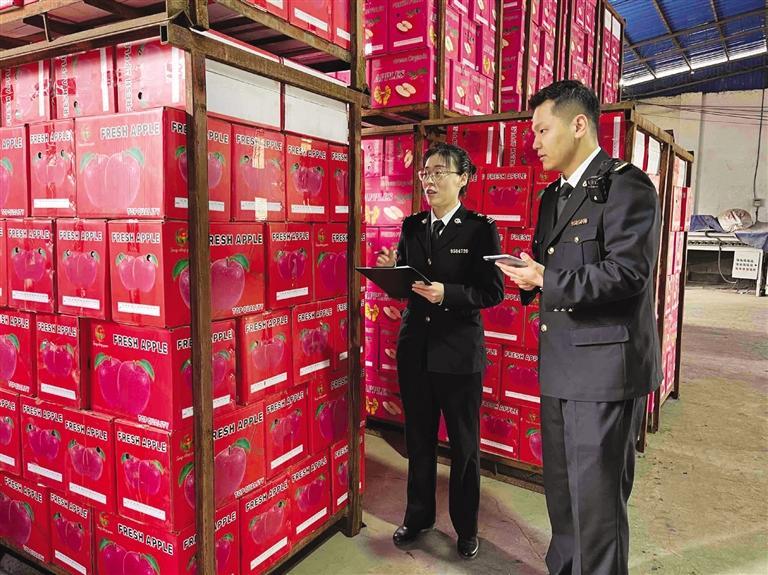 中國甘肅網(wǎng)12月13日訊 據(jù)蘭州晚報報道 12月12日,記者從蘭州海關(guān)獲悉,日前經(jīng)天水海關(guān)檢驗放行,由天水嘉威商貿(mào)有限責任公司生產(chǎn)的26噸鮮蘋果順利出庫裝運,經(jīng)公路運輸發(fā)往越南。大約72小時后,該批鮮蘋果將進入越南消費市場。