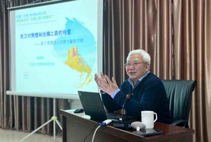 2024年3月21日下午,蘭州大學鄭炳林教授應邀在“絲綢之路與敦煌學”系列公益學術(shù)講座主講《兩漢對敦煌和絲綢之路的經(jīng)營》。講座由敦煌研究院敦煌文獻研究所主辦,趙曉星研究員主持,在蘭州分院舉行。我院專家學者,蘭州大學、西北師范大學、西北民族大學師生,及敦煌學愛好者50余人現(xiàn)場參加了此次學術(shù)活動。
