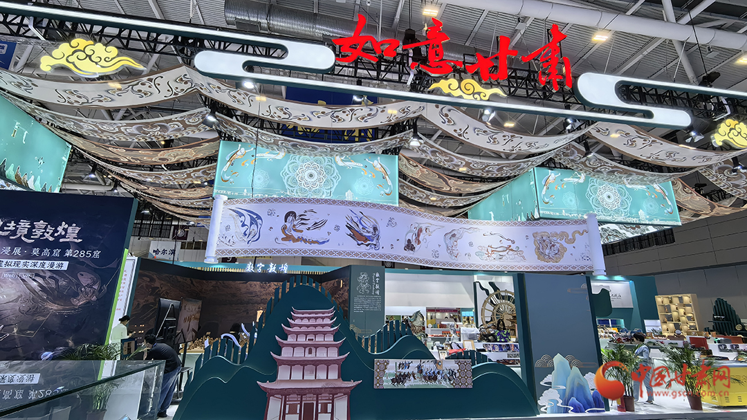 據(jù)了解,甘肅主題館位于深圳國際會展中心文化產(chǎn)業(yè)綜合展9號館,展陳面積510平方米,以主線貫穿、特色鮮明、視覺宏觀、內(nèi)容豐富為總體設(shè)計宗旨,采用敦煌壁畫中石綠為主色調(diào),頂部裝飾敦煌壁畫中藻井圖及線條,融入“九色鹿”“飛天”等設(shè)計元素,突出甘肅的歷史感和雄渾大氣。