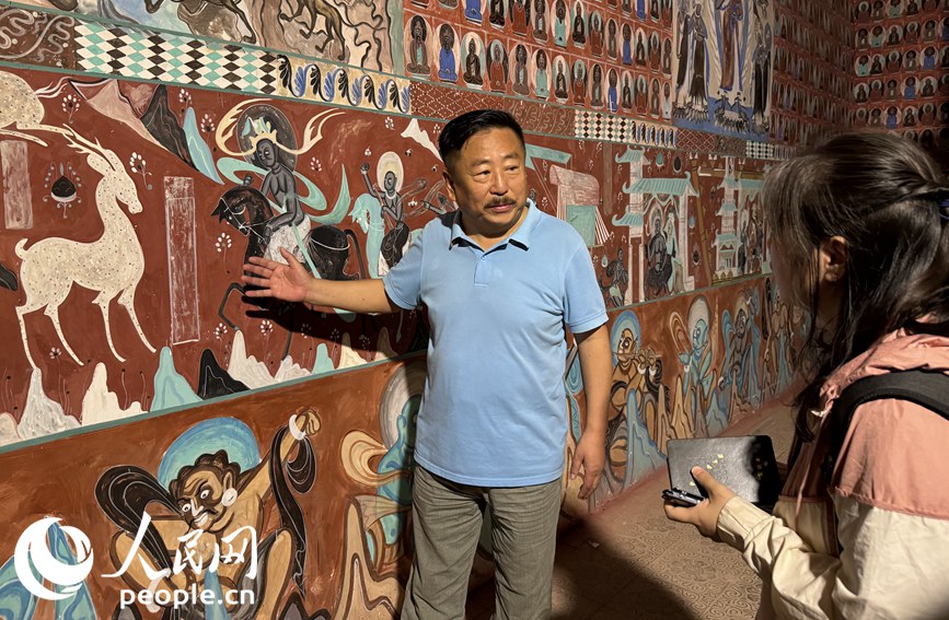 “左邊站著的是打窟人,右邊是畫工和塑匠,都是曾經(jīng)鑄就莫高窟輝煌的工種。”說(shuō)著話,尤路平手里的活一刻也沒(méi)耽擱。