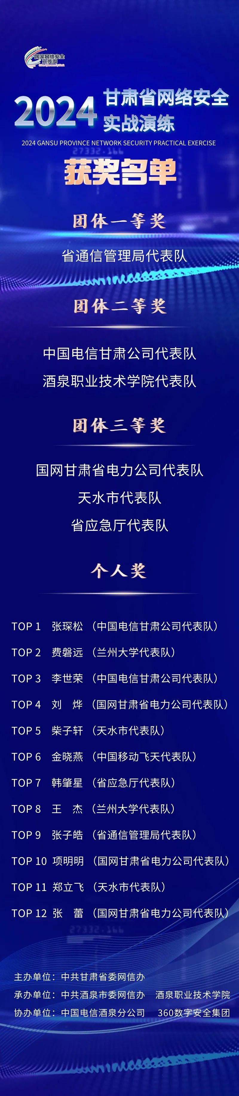 6月14日,2024年甘肅省網(wǎng)絡(luò)安全實戰(zhàn)演練在酒泉圓滿落下帷幕。來自全省各地、關(guān)鍵信息基礎(chǔ)設(shè)施保護部門、關(guān)鍵信息基礎(chǔ)設(shè)施運營單位、省內(nèi)高校、國有企業(yè)、銀行、部隊等領(lǐng)域的60支代表隊180名參演選手經(jīng)過激烈角逐,最終產(chǎn)生團體賽一等獎1個、二等獎2個、三等獎3個,個人獎12個。