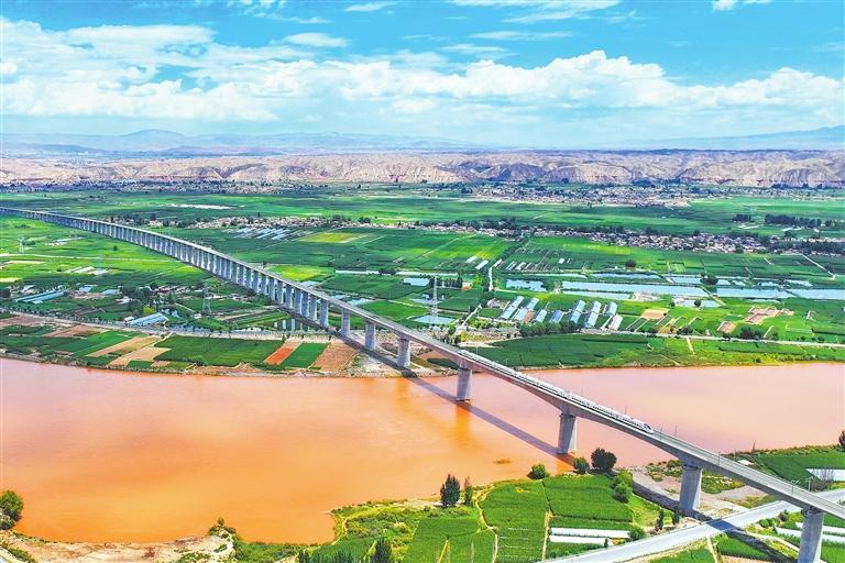 銀蘭高鐵靖遠(yuǎn)黃河特大橋。新甘肅·甘肅日報(bào)記者丁凱