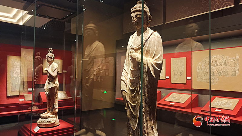 武威市博物館“天梯神韻涼州佛光”——天梯山石窟專題展被譽為“藏在博物館的石窟寺”,展品有天梯山石窟搬遷修復后的壁畫和彩塑等文物76件。