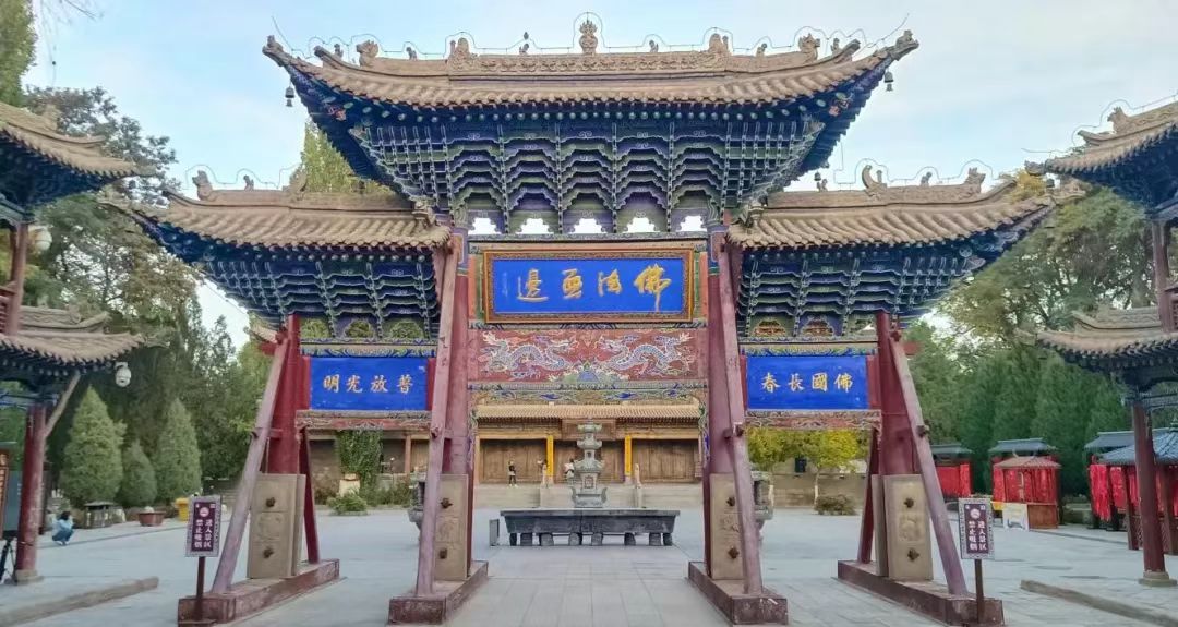 17日下午,當(dāng)采訪團大巴車在夕陽余暉的照射下,風(fēng)馳電掣般駛?cè)霃堃创蠓鹚峦\噲鼍従復(fù)7€(wěn)后,我們見到了多次對接的采訪團成員。因為行程緊張,大家中午在武威午餐后,沒有休息,乘車近4個小時,風(fēng)塵仆仆來到了張掖,就是想目睹這座始建于西夏崇宗永安元年,供奉著全亞洲最大室內(nèi)木胎泥塑臥佛的皇家寺院。