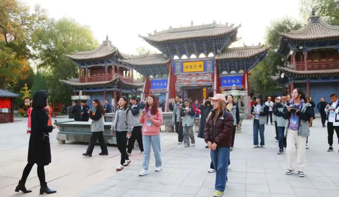 18日上午,迎著耀眼的晨光,采訪團成員乘坐大巴車來到了集自然風(fēng)光、石窟藝術(shù)、民族風(fēng)情、宗教文化于一體的肅南馬蹄寺。馬蹄寺是河西走廊著名的佛教勝地,石窟群開鑿于十六國北涼時期,距今約1600年的歷史,是絲綢之路上至關(guān)重要的歷史文化瑰寶,也是我國早期石窟的杰出代表。秋日的馬蹄寺,秋高氣爽,景色宜人,遠(yuǎn)遠(yuǎn)看去,紅綠相間,層林盡染,大家行走在落葉飄零的山間小路上,對這座建在懸崖峭壁之上、將棧道鑲嵌在山體之內(nèi)的石窟充滿了好奇。