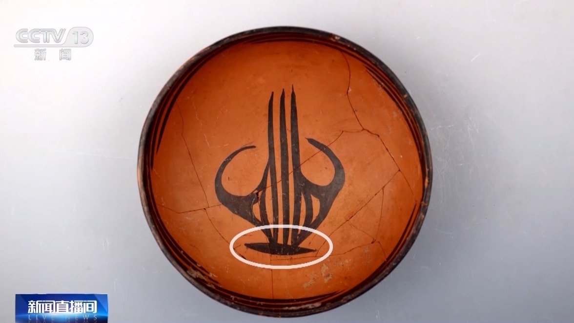 中國社會(huì)科學(xué)院考古研究所副研究員 郭志委:有的專家看到,第一反應(yīng)覺得這是只鳥。有的專家覺得像植物,有不同的解釋,但是這個(gè)紋飾確實(shí)第一次見。