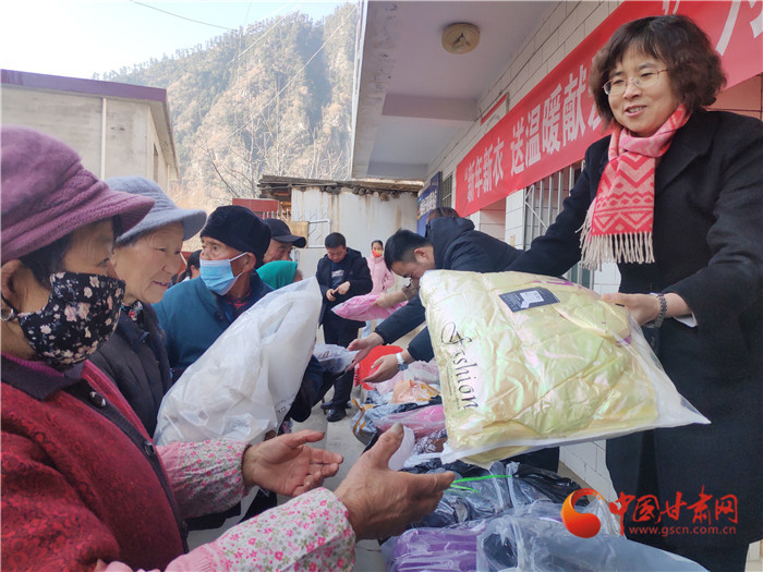 舟曲縣委副書記、縣長(zhǎng)舒時(shí)光為群眾送新衣