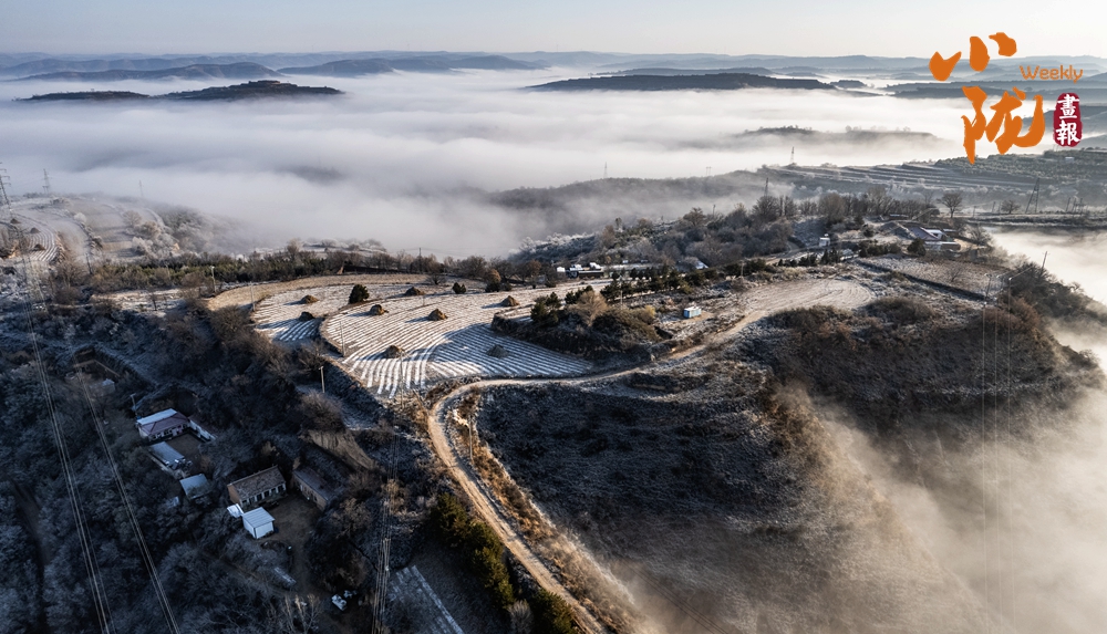 霧漫黃土塬,房屋與梯田的輪廓在薄霧中若隱若現(xiàn),像被淡墨輕輕暈染,融成一幅天然畫卷,朦朧之中,流淌著冬日特有的詩意。