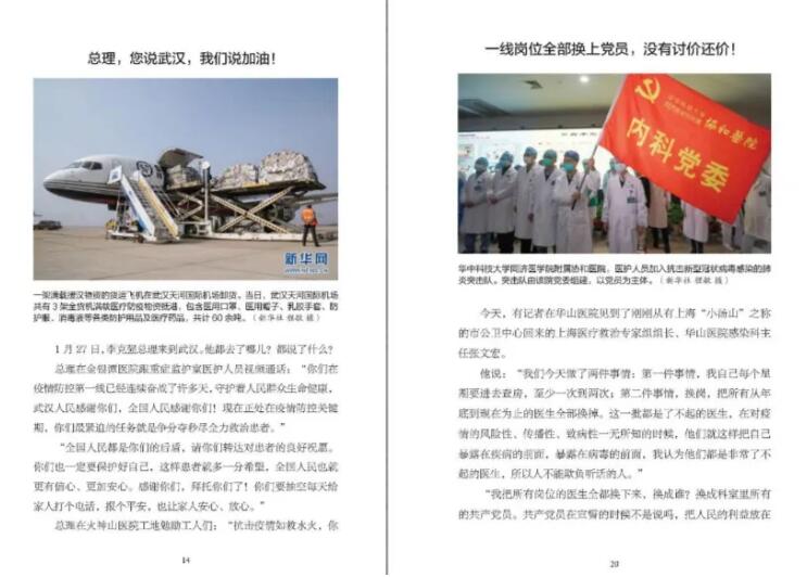 《2020:中國(guó)戰(zhàn)“疫”日志》一書以日志的形式,記錄了2020年1月23日到2月23日期間,中國(guó)每一天的戰(zhàn)“疫”故事:廣大醫(yī)護(hù)人員沒有遲疑、沒有退卻,和死神賽跑,與病毒抗?fàn)?,為生命接力;?jiān)持工作的人民警察、外賣員、環(huán)衛(wèi)工人、快遞員、志愿者……穿梭在城市的每個(gè)角落,守護(hù)著自己的城市;許多媒體記者冒著被感染的風(fēng)險(xiǎn),深入一線采訪報(bào)道……