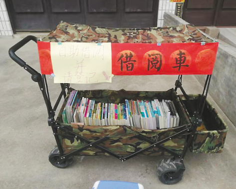 早上9點(diǎn)左右,自助借閱車從外婆家推出門,天黑了再推回來(lái)??吹较胱x的書(shū),讀者自行登記書(shū)名和個(gè)人信息,留下聯(lián)系方式,就能把書(shū)借回家。