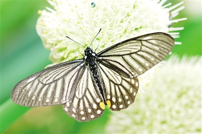 我最先注意到的,是一只半透明的黑色蝴蝶,看上去很像斑蝶,又總覺得有什么地方不對(duì)。后來知道了,它就是小黑斑鳳蝶。它擬態(tài)有毒的斑蝶,能讓部分天敵避而遠(yuǎn)之。如果這是一個(gè)設(shè)計(jì)或安排的話,那可真是巧妙。