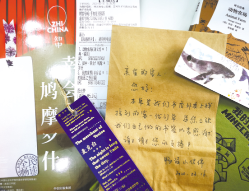 書店人為外賣訂單寫下溫暖留言。美團 供圖