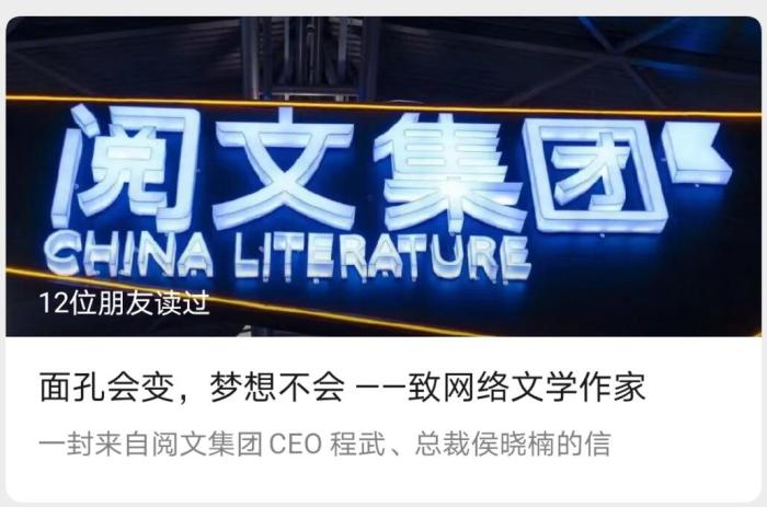 首場懇談會后,閱文集團新管理層宣布改革舊合同。微信文章截圖