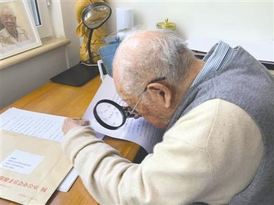 “我雖然歲數(shù)很大,身體不好,眼睛近瞎,但是我仍然堅持在北大養(yǎng)成的習慣,學習,學習再學習,眼睛看不清楚,我用放大鏡也要讀書。”說著,馬識途拿起了身邊的放大鏡示意。
