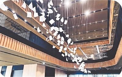 走進(jìn)大廳,英國(guó)藝術(shù)家保羅·考克斯基在挑高大廳創(chuàng)作的公共藝術(shù)作品“陣風(fēng)”映入眼簾。上千本白紙書(shū)頁(yè)隨風(fēng)騰飛的瞬間在空中凝結(jié)下來(lái),象征著閱讀的快樂(lè)與思考,震撼的畫(huà)面宛如置身充滿藝術(shù)氣息的美術(shù)館。