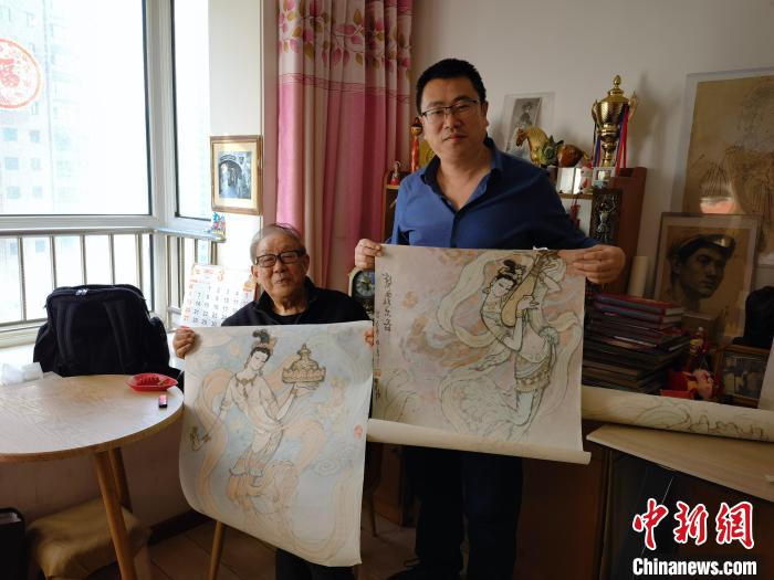 3月上旬,《絲路花雨·誕生》作者陳曉斌(右)拜訪今年86歲的舞美設計師李明強(右)老先生?!⊥跸让稀z