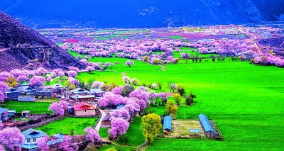 波密桃花谷桃花盛開 西藏林芝市波密桃花谷,面積約為155.04平方千米,平均海拔2740米。每年3月到4月中旬,這里的桃花陸續(xù)開放,人文景觀豐富的雪山下、村落間隨處都是桃花的蹤跡。作家江子在散文《去林芝看桃花》中寫道:“我看到一路上它大片大片地盛開。它向著我奔跑。好像是它終于認出我來,然后相邀更多的桃花來與我相認……”央青占堆(藏族)攝/光明圖片