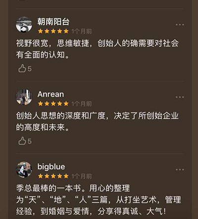 這本書可以讓讀者了解具有代表性的中國60后企業(yè)家的不同面向,既能從季琦的成功經(jīng)驗(yàn)中獲取養(yǎng)分,也能從他的人生哲學(xué)和生活美學(xué)里汲取能量。