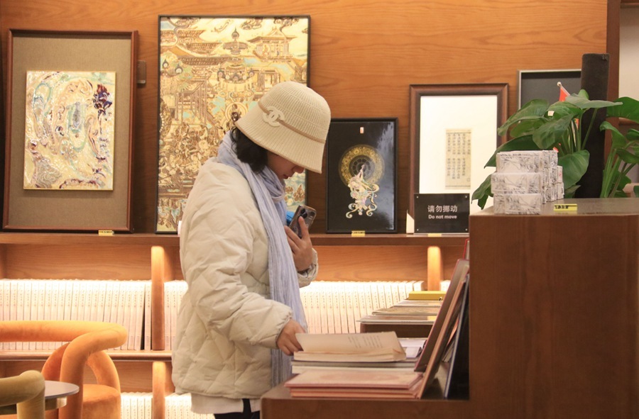 讀者在甘肅敦煌書(shū)局閱讀圖書(shū)。張曉亮攝